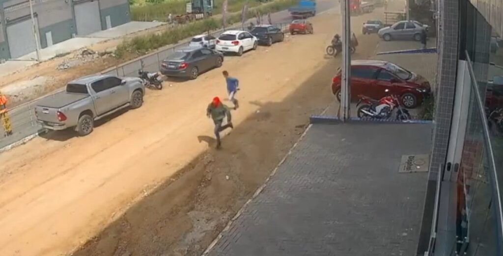 Uma câmera de segurança flagrou a fuga de um grupo de criminosos logo após um assassinato, em Caruaru, no Agreste do Estado. Na imagem, divulgada nas redes sociais, é possível ver pessoas circulando no local quando surge um carro branco.