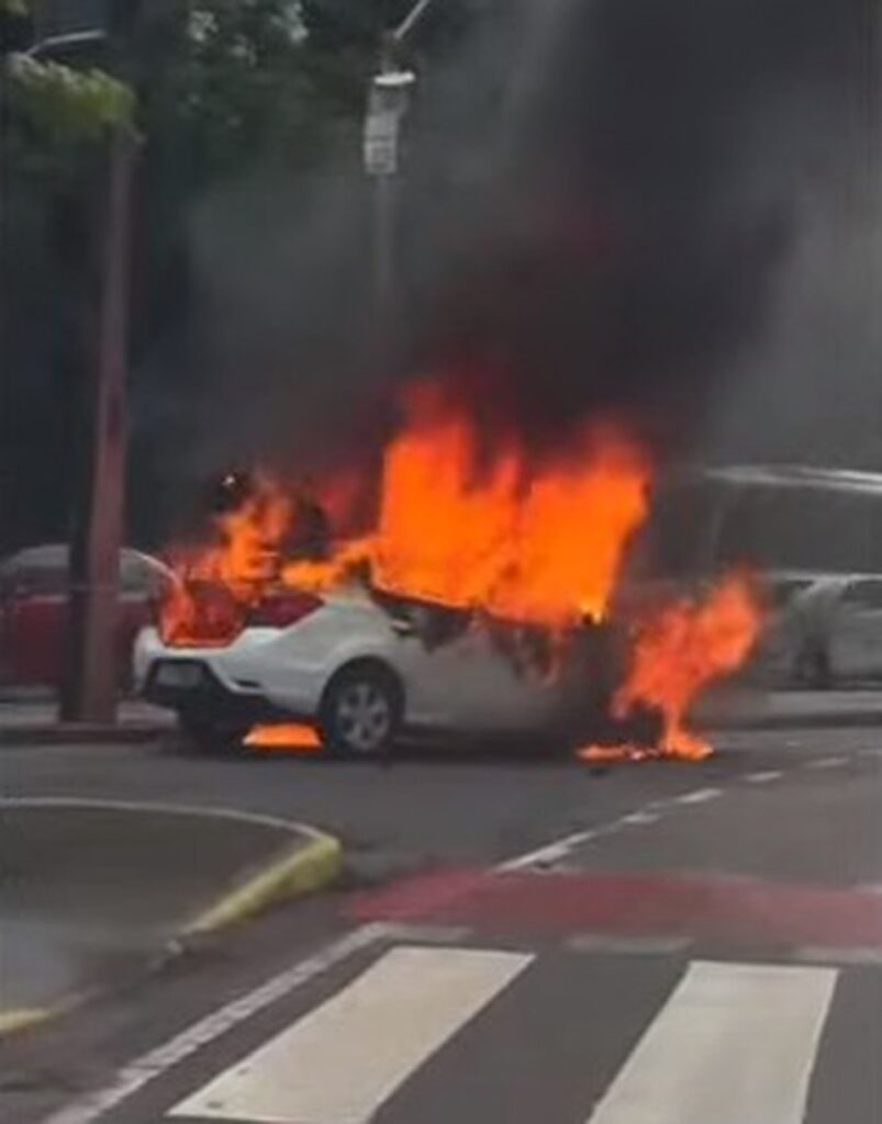 Um carro pegou fogo, na rua Padre Roma, entre os bairros do Parnamirim e Tamarineira, na Zona Norte do Recife, na manhã desta quarta-feira (10). Motoristas que passavam pelo local registraram as chamas consumindo o veículo modelo Prisma de cor branca. Felizmente, ninguém ficou ferido.