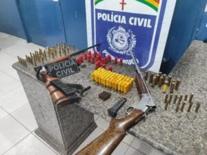 Por Victória Campos A Polícia Civil apreendeu armas, munições e outros materiais no distrito da Lagoa do Barro, na Zona Rural de Araripina, no Sertão, na