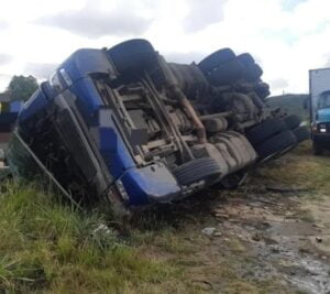 Por Victória Campos Um caminhão tombou e deixou dois homens feridos na BR-104, em Agrestina, no Agreste do Estado. O acidente aconteceu no domingo (3), por