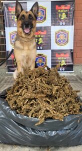 Em uma operação do 1°Batalhão Integrado Especializado (BIEsp), contra o tráfico de drogas, a cadela policial Dóris encontrou uma grande quantidade de maconha enterrada numa área rural
