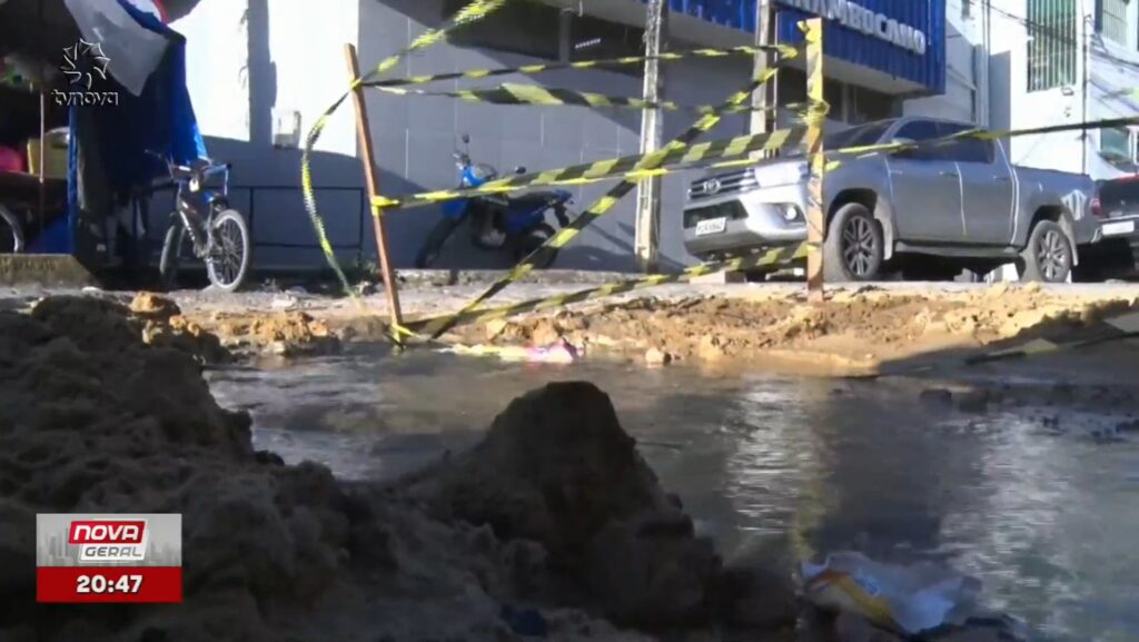 Enquanto a água jorra na rua, em casa os moradores ficam sem nenhuma gota. O que impede deles fazerem atividades básicas, como cozinhar e tomar banho. É tanta água, que o vazamento alcançou a Avenida Luís Correia de Brito, a principal do bairro.