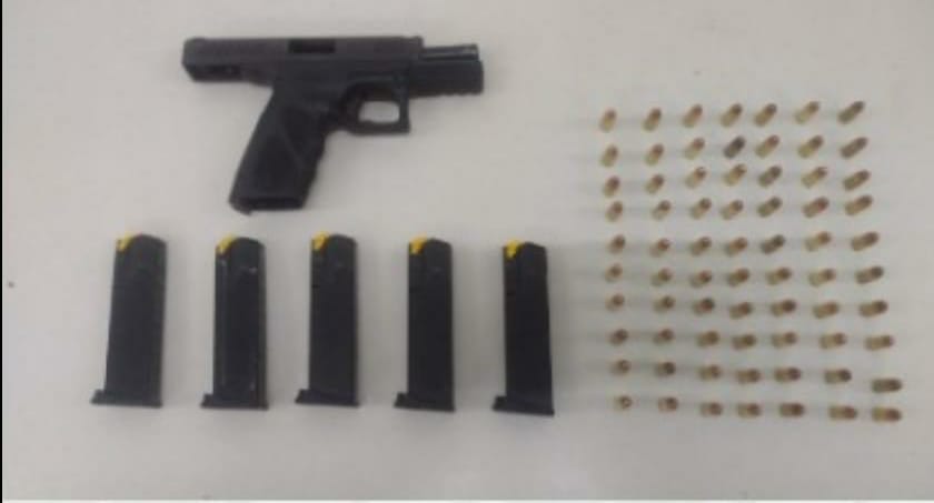 Durante uma vistoria no carro, os PMs encontraram uma pistola calibre .9mm, cinco carregadores e 70 munições, além de R$2.562,00.