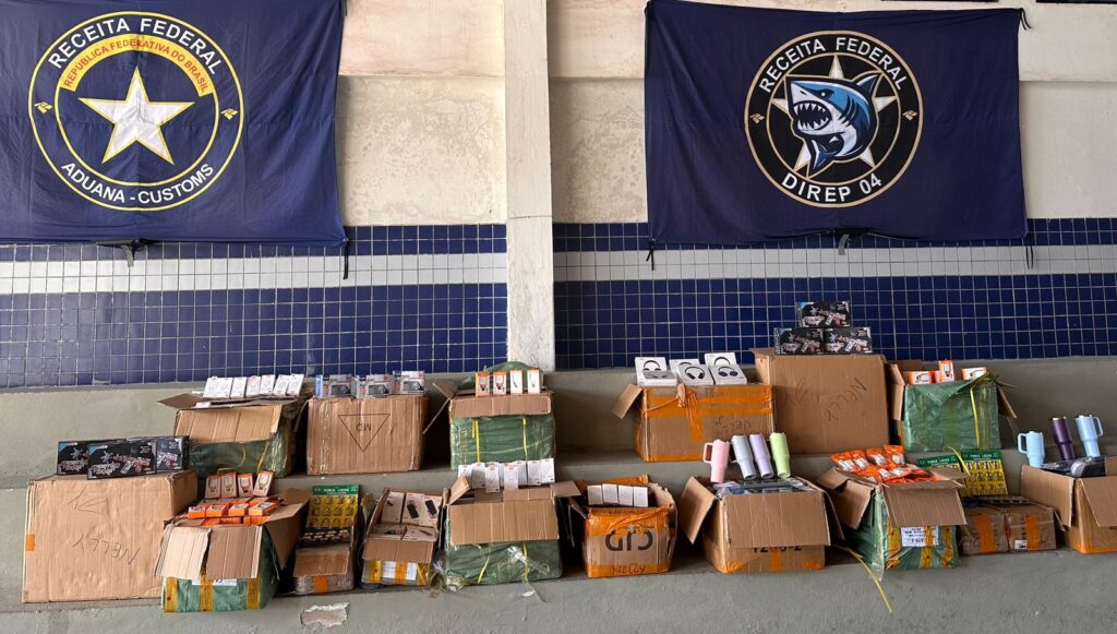De acordo com o órgão, entre os itens retidos estavam celulares, carregadores, receptores de TV, videogames, relógios inteligentes, bolsas, óculos e brinquedos falsificados. O valor total da carga é estimado em R$ 1 milhão.