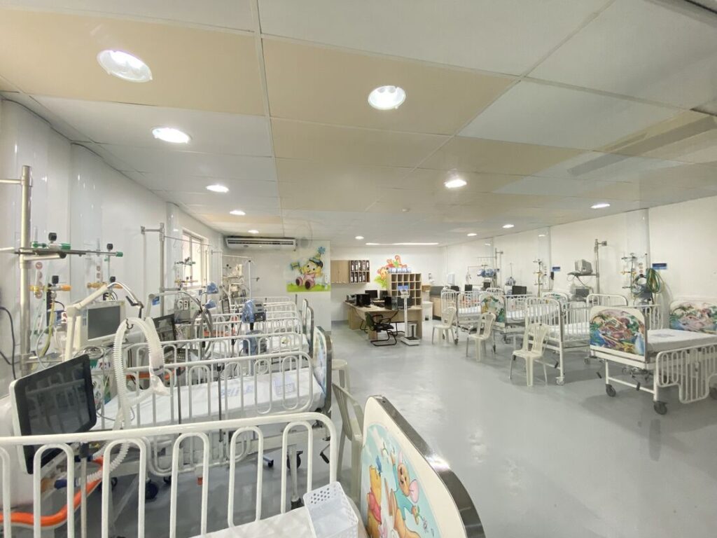 Os leitos, que vão receber pacientes com quadros da Síndrome Respiratória Aguda Grave (SRAG) para tratamento especializado, foram divididos em: dez leitos de terapia intensiva pediátrica, 16 leitos de enfermaria neo/pediátrica e outros dez leitos de UTI neonatal.
